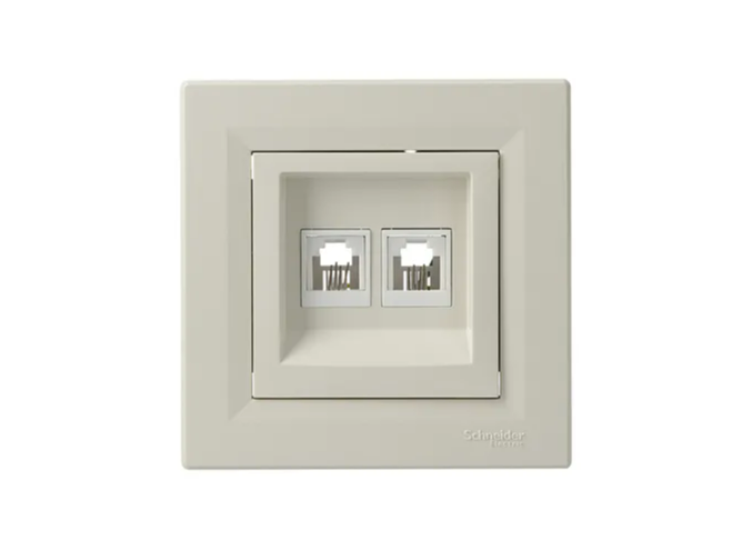 سوکت تلفن دوگانه Asfora از برند Schneider Electric، محصولی کاربردی با طراحی شیک و مینیمال است. رنگ سفید براق آن به هر دکوراسیونی جلوه‌ای مدرن و تمیز می‌بخشد و برای نصب توکار در خانه‌ها، دفاتر یا فضاهای تجاری کوچک مناسب است.