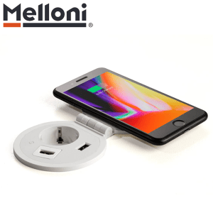 پریز توکار ملونی مدل 10032 یکی از پیشرفتهترین مدلهای این برند بوده که تلفیقی از فناوری هوشمند، طراحی مدرن و کارایی بالا را ارائه میدهد. با طراحی گرد و مکانیزم پاپ-آپ، این پریز در حالت عدم استفاده کاملاً داخل سطح میز یا کابینت قرار میگیرد تا ظاهری تمیز و یکپارچه به فضا بدهد.